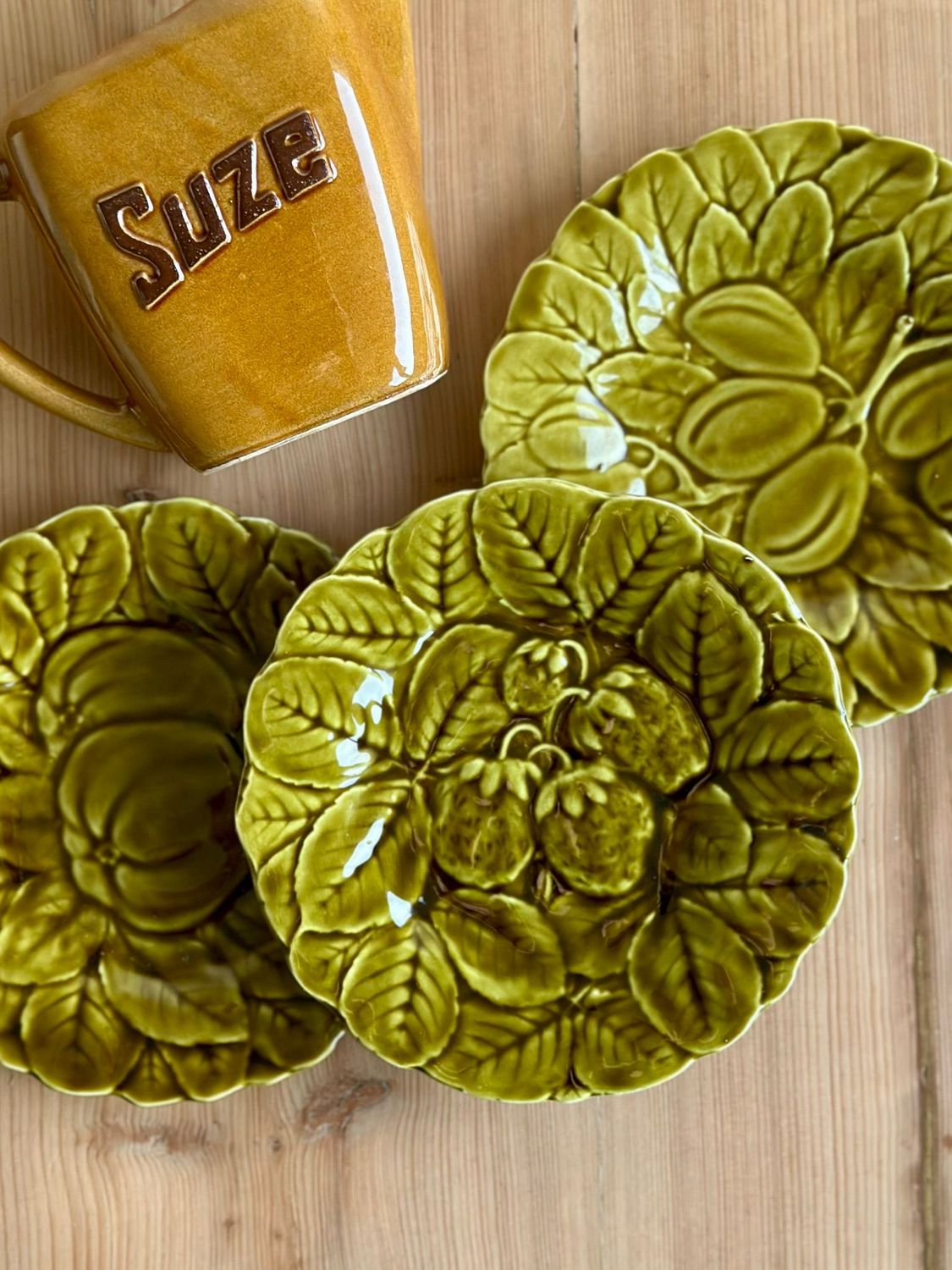 3 assiettes à dessert en barbotine modèle Fruits - Sarreguemines